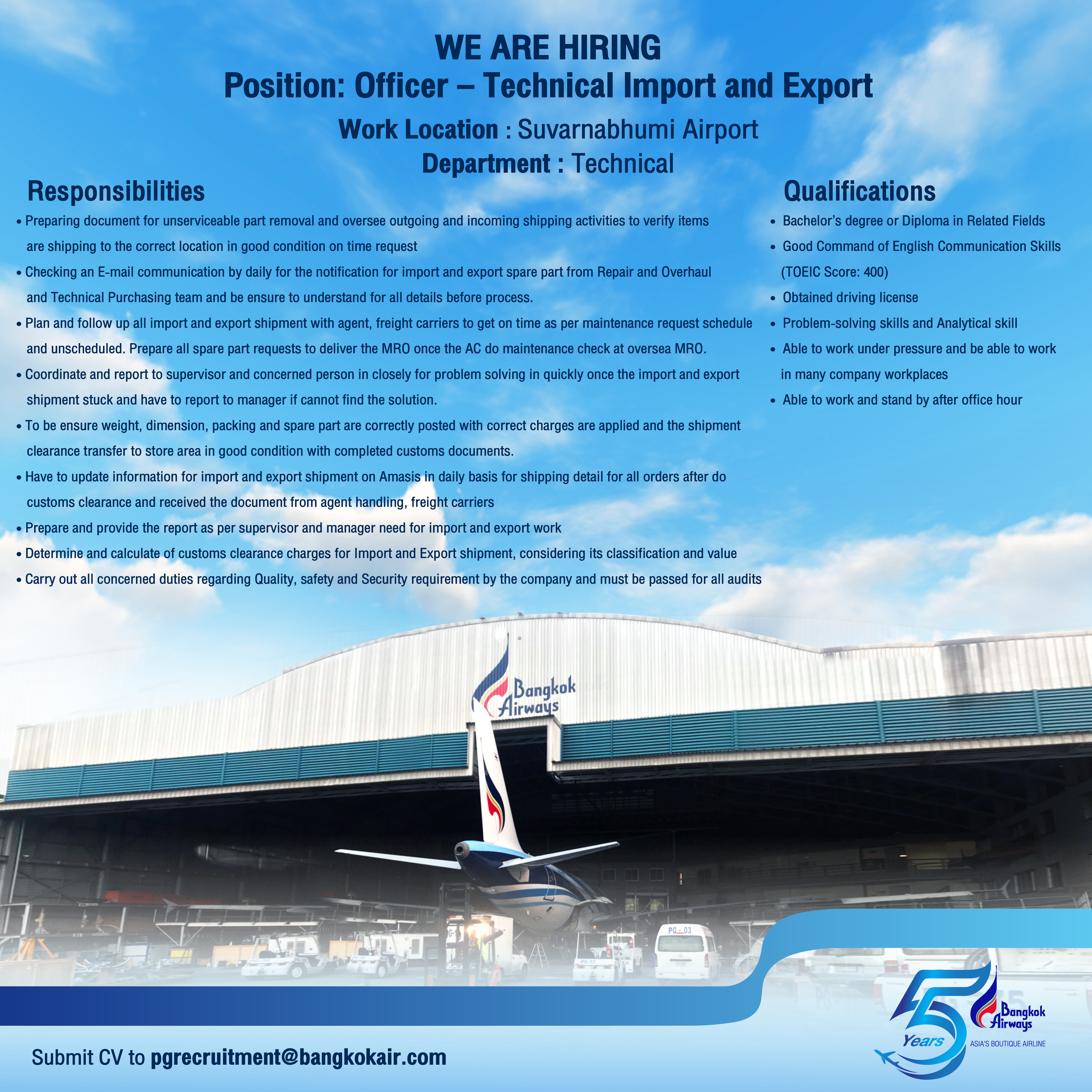 Bangkok Airways รับสมัคร Technical Import & Export Officer ที่อาคารทับสุวรรณ ขอ TOEIC 400+